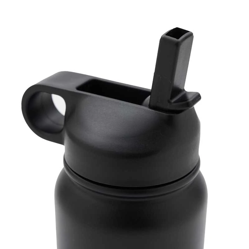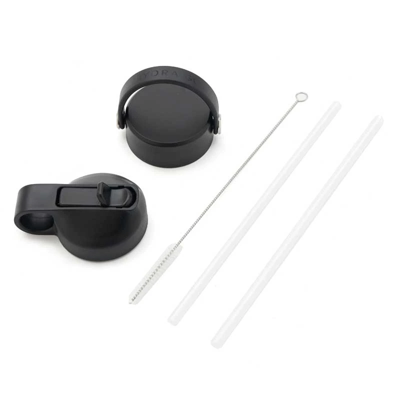 Cuenta con dos tapas negras a rosca, para que utilices la que te resulte más cómoda: la primera, con boquilla y anillo para facilitar el agarre, y la segunda con manija para transportarla. Incluye 2 sorbetes y cepillo limpiador.