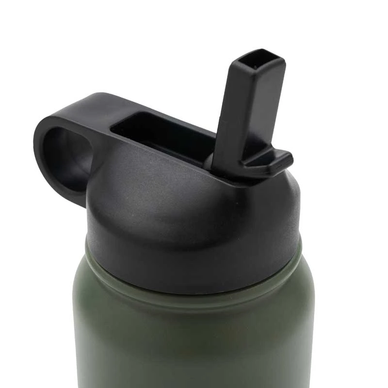 Botella isotérmica de 750 ml, con doble pared de acero inoxidable 18/8, pintura en polvo y base de silicona antideslizante.