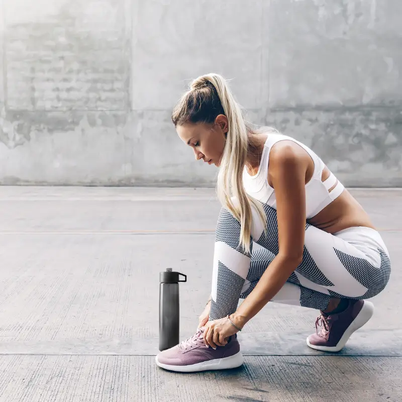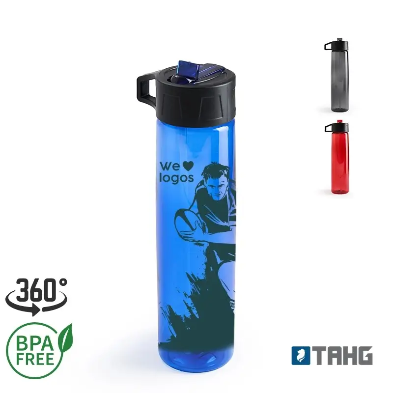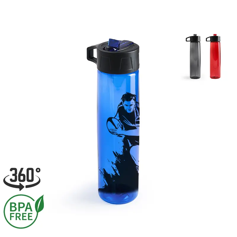Botella de PP y PC, con boquilla vertedora ideal para ir al deporte. Cuenta con un agarre en la tapa, para facilitar su transporte. Capacidad: 750 mL. Medidas : 27 x 6,6 cm.
