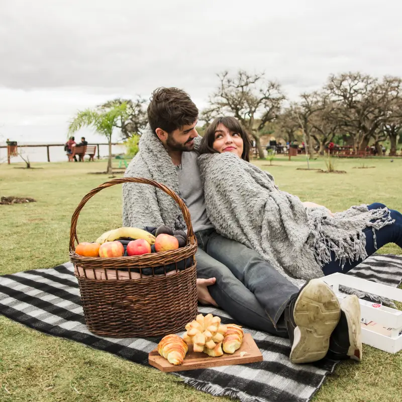 Manta plegable con reverso realizado en PVC.